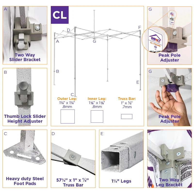 Heavy Duty Steel CL – Great for windy conditions! This classic steel frame weighs in at almost 74 lbs. It is the workhorse of our commercial frame line.