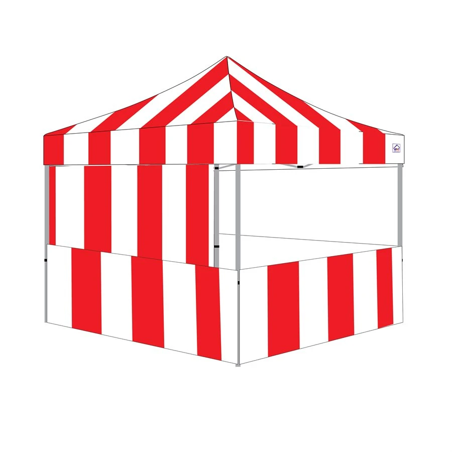 The Carnival Kit’s lightweight steel construction is engineered to ensure simple set-up, no tools required. It is equipped with a premium polyester water-repellant, fire resistant canopy fabric for durable protection and long lasting enjoyment. This colorful red and white striped canopy kit features Impact Thumb-lock sliders, a textured steel frame, and durable 500-denier polyester fabric top that’s 100% fire-retardant for added safety and comes with a dust cover for convenient portability and a rope and spike kit extra stability. It’s the perfect canopy for a fairgrounds concessions stand or a festive day out with the family! We have replacement parts available for all of our frames. Fixes are simple and inexpensive.