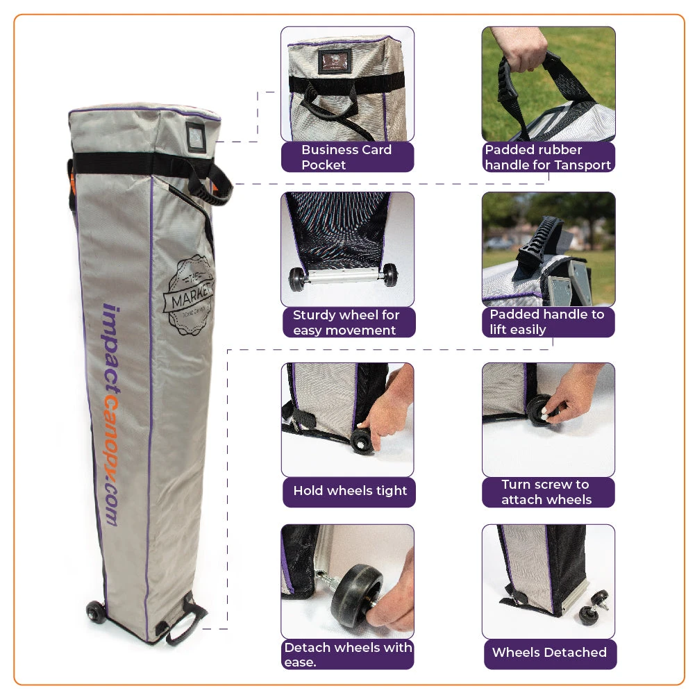 - Wheels on the roller bag are detachable and easily screw in and out of place by hand