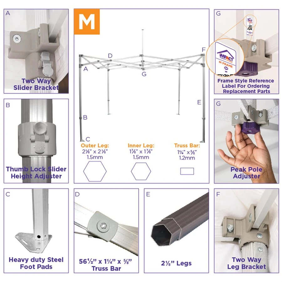 - 10 x 15 Aircraft grade anodized aluminum brush finish canopy frame