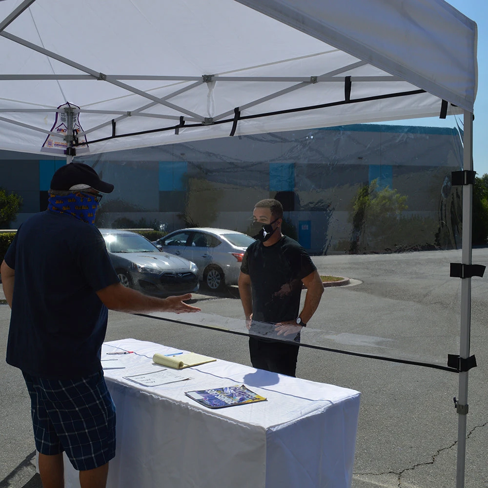 The Impact Canopy Clear Protection Shield Half Wall allows your staff and customers the protection they need when conducting business in close proximity. Keep eye contact and smile while enjoying the protection of our portable clear barrier. They are easily installed with Velcro loops to attach to the canopy frame truss bars.