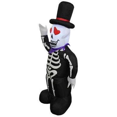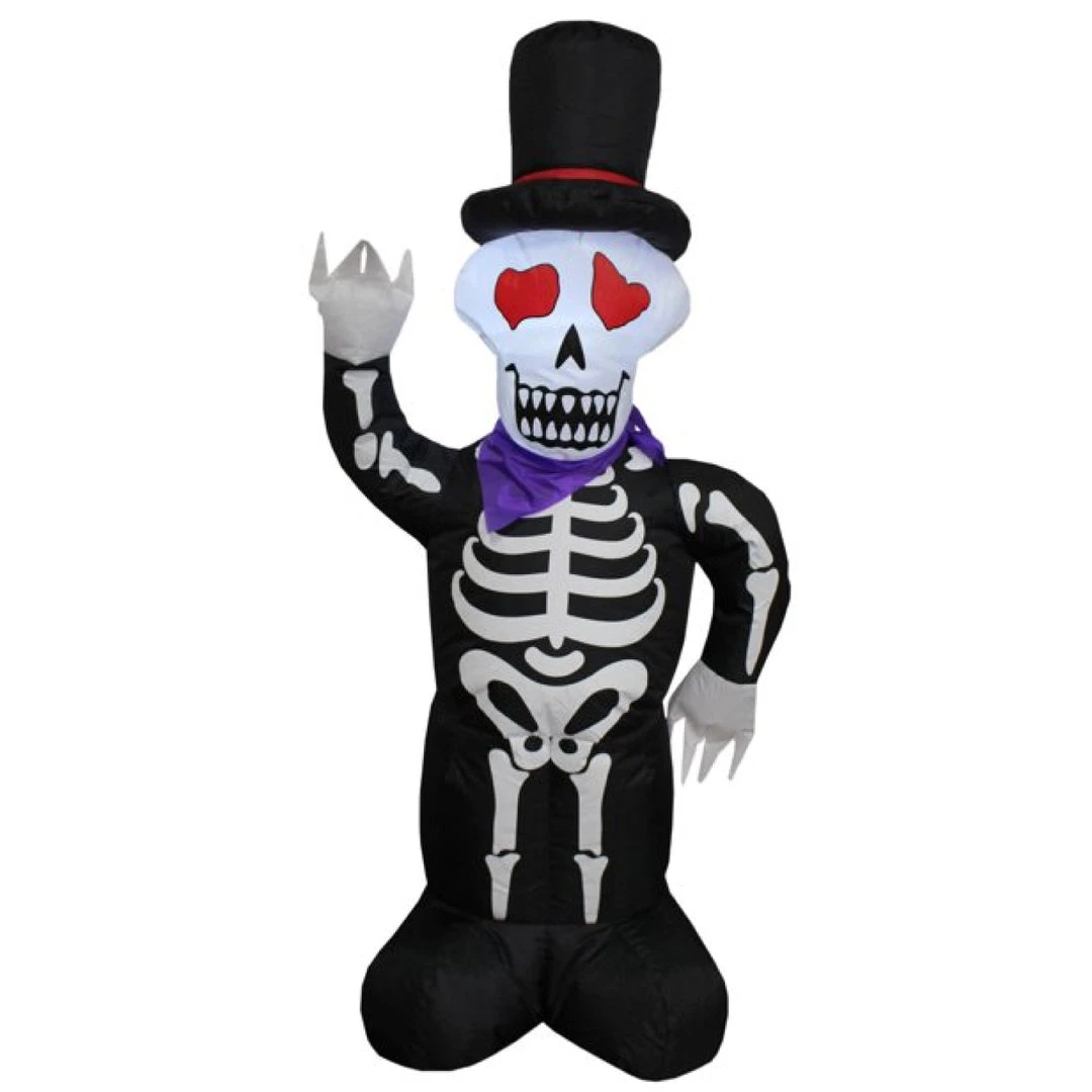 Impress your neighbors and Trick or Treaters and add some seasonal holiday flair to your yard or home with Impacts Inflatable Halloween decorations. This item features an 4′ Skeleton man wearing a stylish top hat and bandana! Set up is quick and easy: just plug it in with the included adapter and your decoration will be fully inflated in minutes!
